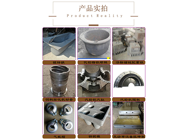 生產(chǎn)設(shè)備:樹脂砂鑄造、覆膜砂鑄造、失蠟鑄造、中頻電爐、爐前分析儀、退火爐等。